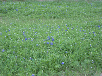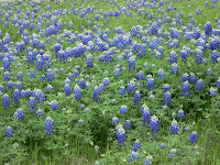 God gave the world the rainbow as a symbol of hope. But He saved this delicate wildflower, the bluebonnet, for us Texans. They begin as dots of blue in the sea of green. Each flower has these tiny little blue and white petals. Individually they would quickly be lost against our vast horizons. Once when they maturely stand shoulder to shoulder magnifying each others hues, they over take the field.